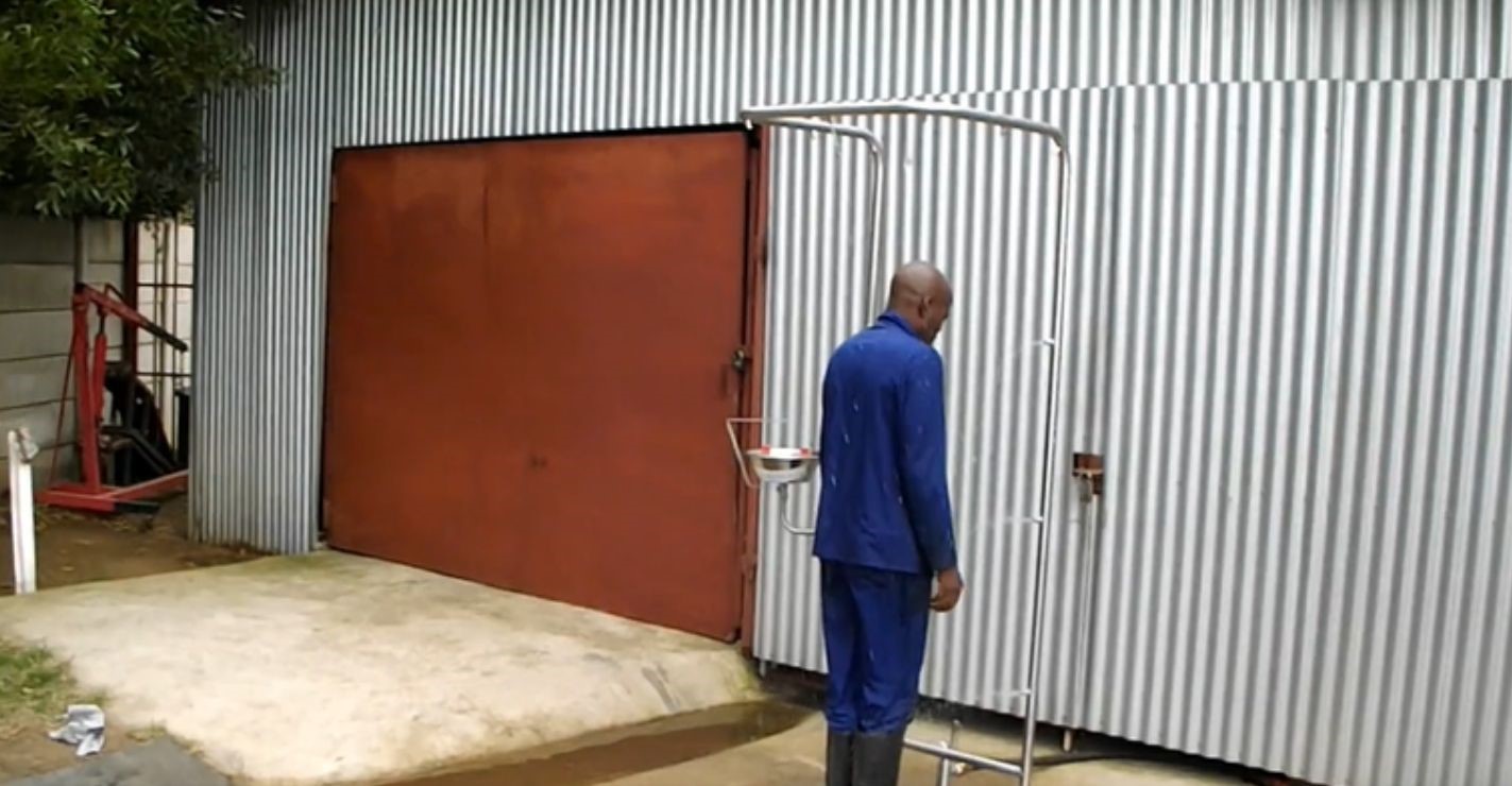 Walk from 'dirty room area' through the shower to' clean room area'. (Available with and without gas geyser system and side cubicles.)