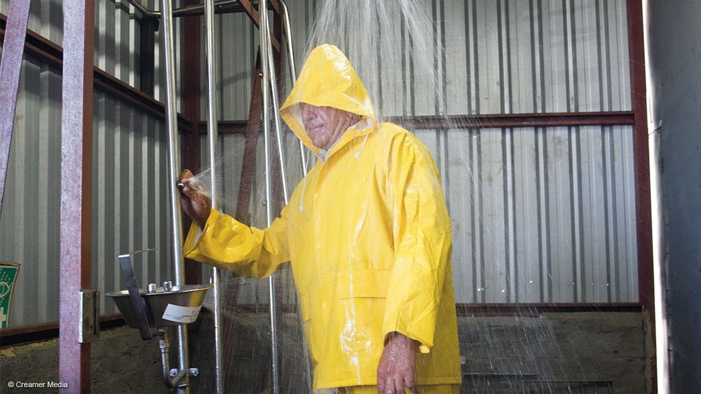 Emergency safety showers and eyewash stations provide on-the-spot decontamination.